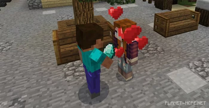 You can locate these girls in villages as they replace the regular villagers. Once you find someone you really like, you can ask her to marry you in MCPE. Obtain a diamond ring (which is just a regular diamond) and offer it to her. If she accepts your proposal, you’ll see several red hearts appear on your screen.