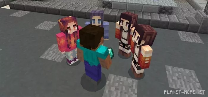 Introducing the mod “Girlfriends (Companion)“, which transforms all villagers into women. If you possess a diamond, you can propose to one of them. No longer do you have to be alone in Minecraft Pocket Edition. Your wife will automatically follow you everywhere and can even assist by carrying some of your items.