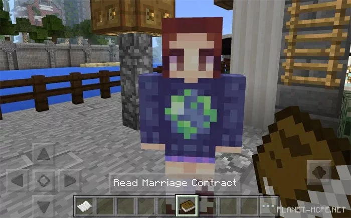 If you’re interested in reading the marriage contract, you can find your wife and give her a book, receiving a blank piece of paper from the world of MCPE in return. You could pretend there’s something written in it.
