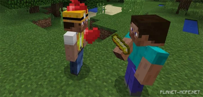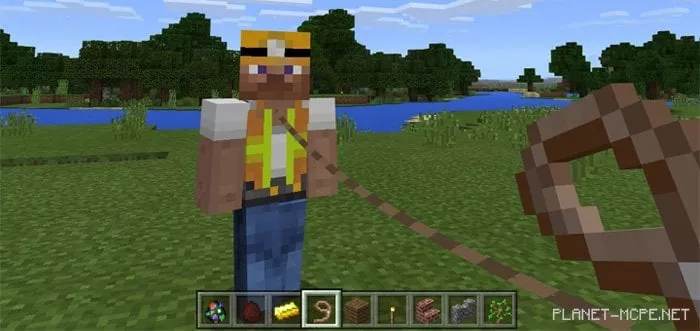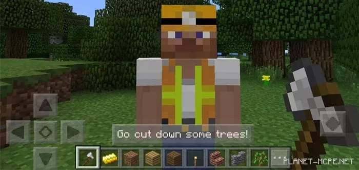 The mod «Helper» introduces a new helpful mob into the world of Minecraft Pocket Edition. This assistant can be dispatched on small missions to gather resources like wood or food. You can also keep it close during your travels and adventures in the MCPE world, where it will follow you and protect you from hostile mobs.