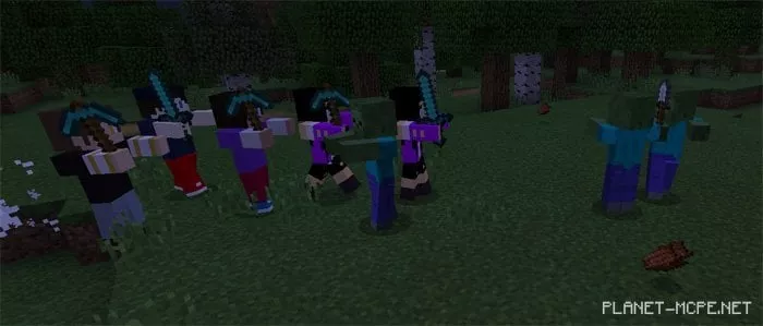 Humanoid Villagers (Gumanoid Villagers) — this mod enhances the intelligence of villagers like never before. Once you install the addon / mod Humanoid Villagers, village inhabitants will be able to defend themselves. Now, whenever danger approaches their village, they will take immediate action to neutralize it. For instance, if a horde of mobs heads towards the village, the villagers will charge at them and eliminate the threat. In addition to their increased intellect, these villagers are also significantly stronger than zombies and possess more health than before.