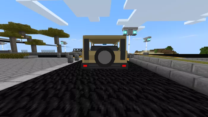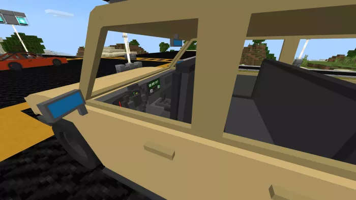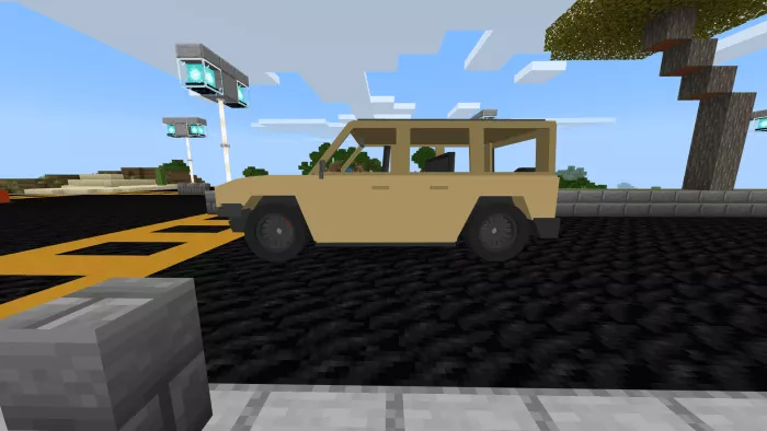 In Minecraft, the Hummer features seating for 5, an inventory system, a substantial health pool, animations, and custom sounds. There are 4 color options available, each linked to a specific theme.