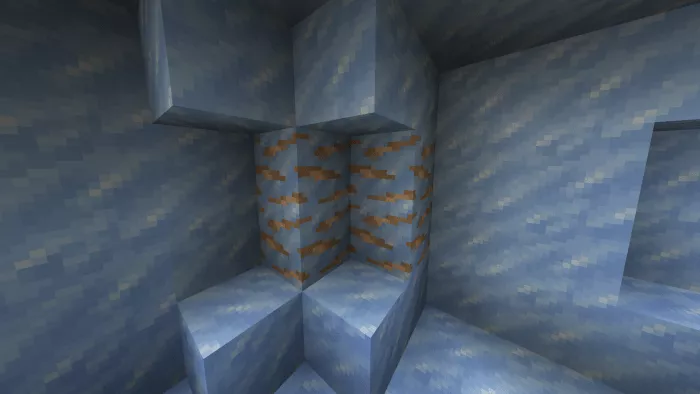 The frozen iron ore vein is a completely new block. One of these can hold up to 8 units of material. However, mining it in MCPE will take a bit longer than usual.