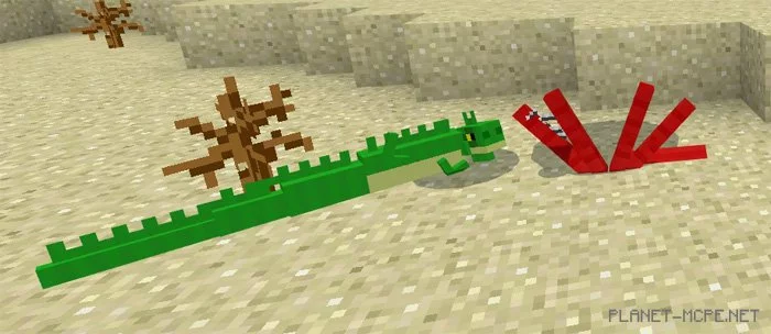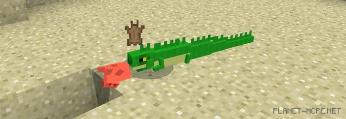 Iguanas are omnivorous lizards characterized by their long green tails. They show little to no interest in players of Minecraft Pocket Edition. Most of the time, they will simply run away from you. However, iguanas are predators, so it’s wise to keep an eye on your small pets. You can attempt to tame an iguana, but this is nearly impossible as they tend to flee constantly. Interested? Then add iguanas by downloading the mod“Iguanas” for Minecraft PE.