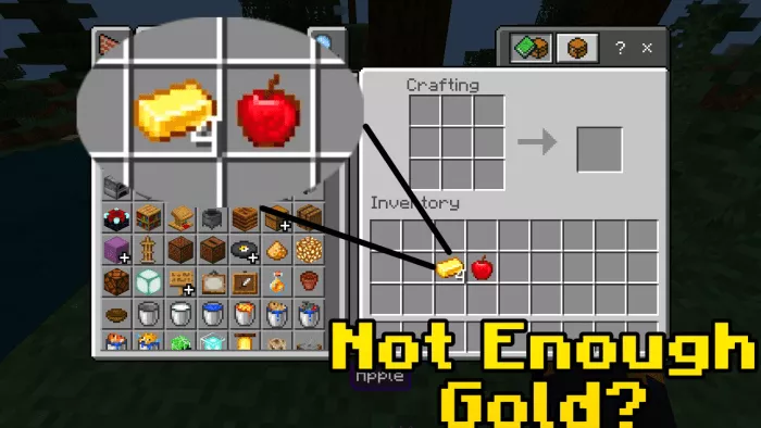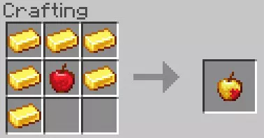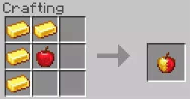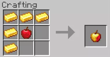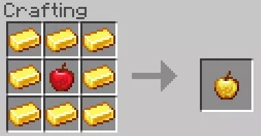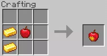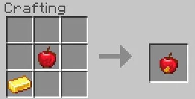 The crafting process is quite typical, but with one important caveat. To be fair, the creator linked the food effects to the amount of gold used in Minecraft PE when making an apple. The more gold you use, the greater the effect.