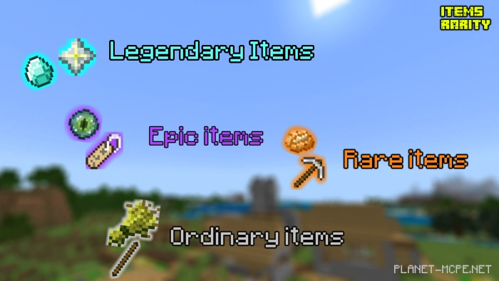 With this mod, players will be able to instantly assess the rarity of an item in Minecraft Bedrock. It classifies items into four rarity categories: legendary, epic, rare, and common.