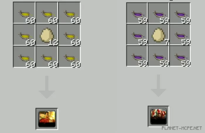 Fresh crafting recipes and spawn egg creation for the new mobs.