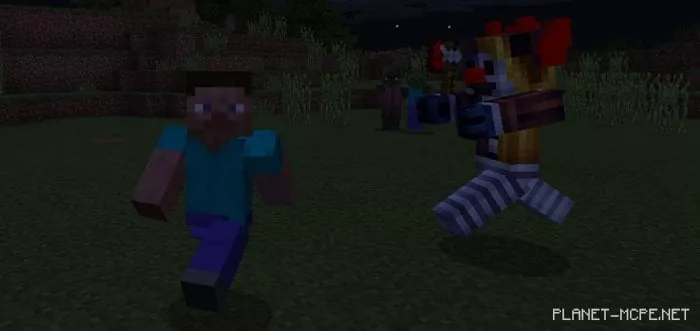 The mod «Killer Clown» transforms one of the mobs in Minecraft PE into a deranged clown. The standout feature of this mod is the clown’s model, which looks fantastic. Although the Killer Clown isn’t classified as a boss, it only possesses 10 hearts. If you plan to use this mod in MCPE, I suggest pairing it with a Halloween-themed map.
