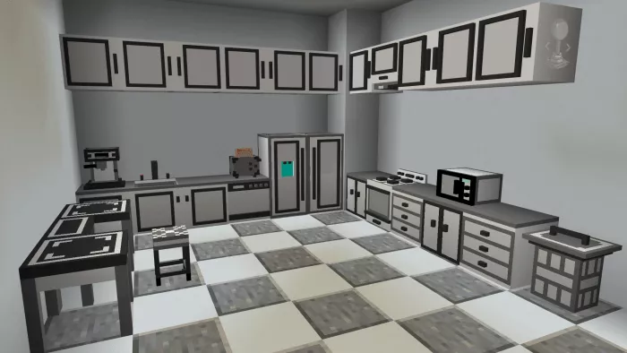 All items in the modifications for Kitchen Appliances feature identical textures, ensuring you won’t encounter any issues in Minecraft Bedrock when deciding where to place them. You can look forward to a total of twenty different items in Minecraft. Currently, crafting is not available, so you can add items through the creative inventory or by using the command /give @s ka: (the item name is listed with each appliance)