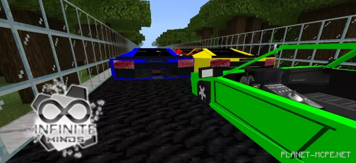 The mod called “Lamborghini Murcielago” adds a sports car Lamborghini Murcielago to Minecraft Bedrock, which can reach speeds of up to 353 km/h (220 miles per hour). You can choose the color of the car to your liking.