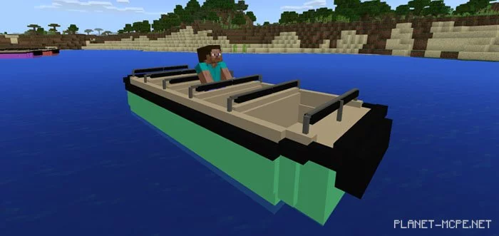 The mod «LEMO Attraction Boat (Amusement Park Boat)» is the first add-on that replaces the existing boats with new ones. These are inspired by real-life boats used for rides in theme parks. Currently, only one player can sit in them in Minecraft PE, and they can be controlled just like a regular boat.