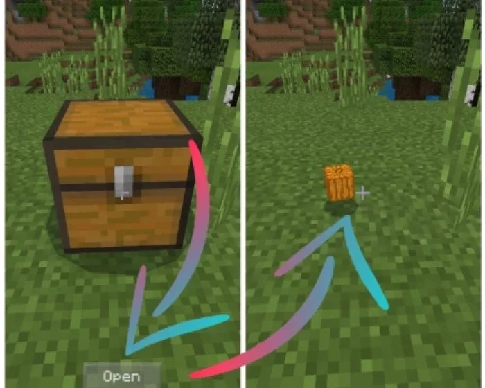 To open a chest, long press on it and select “Open.” While you won’t actually open it, its entity will perish, causing a random item to drop.