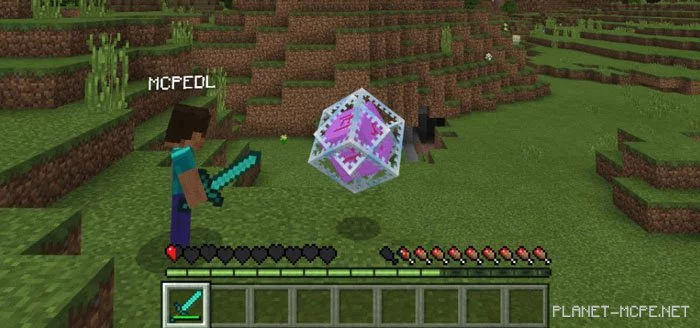 The mod «Lucky Healings (Fortunate Healing)» introduces a new crystal called the Regeneration Crystal in the world of Minecraft PE. This crystal resembles the End Crystal, but they are distinct from one another. When a player in MCPE enters the vicinity of the floating crystal, their health is automatically restored. Since it naturally spawns in the Overworld of Minecraft Pocket Edition, it will be incredibly beneficial for gameplay!