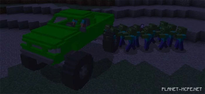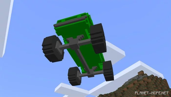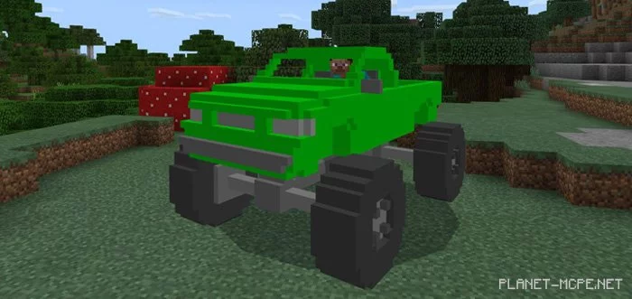 MonsterTruck is the ultimate vehicle for swift travel in Minecraft PE, particularly if you’re planning to venture off-road (there are no generated roads in Minecraft PE). This car boasts impressive speed and can even jump (though not very high), plus it takes no damage from falls. Currently, there are six distinct color options available.