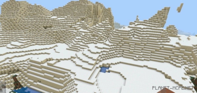 This is likely one of the first biomes you will encounter when starting the game. It features towering mountains made of blue ice and snow!