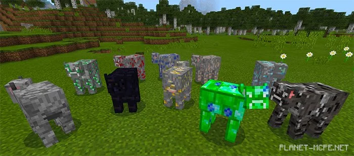 Here’s a list of the newly added cows, each inspired by a specific mineral. All cows (except for the quartz cow) spawn in the same biomes as regular cows.