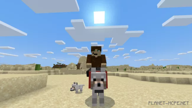 As for wolves, they are much faster than chickens, making them convenient for traveling across plains or deserts. However, you cannot travel on them in hilly terrain in Minecraft Bedrock because they cannot jump. When they come into contact with water, the same command is triggered as with horses: you automatically dismount from the wolf.