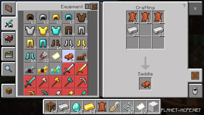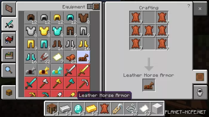 Leather horse armor (note: this recipe may not function)
