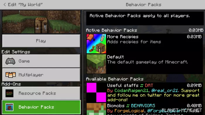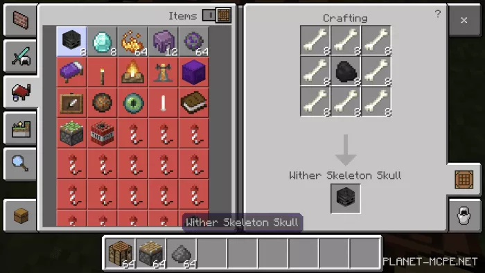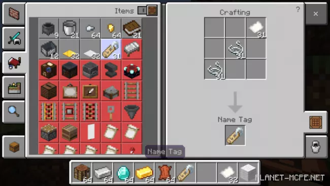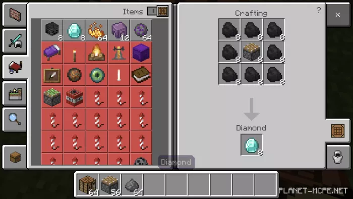 The mod “More Recipes” introduces new crafting recipes in Minecraft Bedrock for items that are typically not craftable. This mod is compatible with version Minecraft 1.12 and later. Be sure to enable experimental gameplay before starting. The mod can be utilized on any platform.