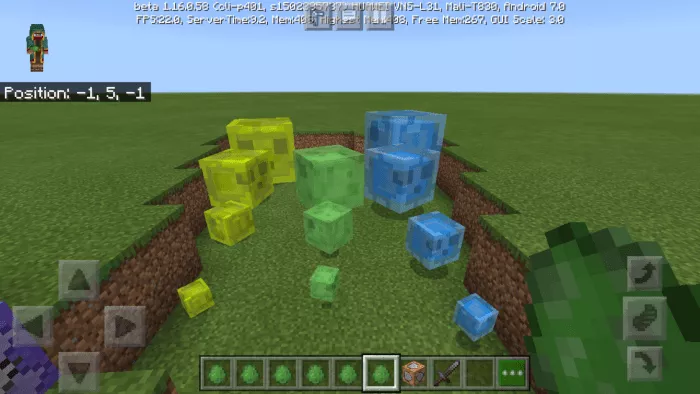 In addition to the new slimes, their heads can also be crafted. You can create them using slime surrounded by materials like emeralds, diamonds, and gold. Two new features have been added as well: items are attracted to sticky blue slimes, which can merge together.