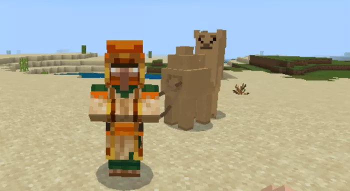 Spawns in the desert biome and is found with two camels.