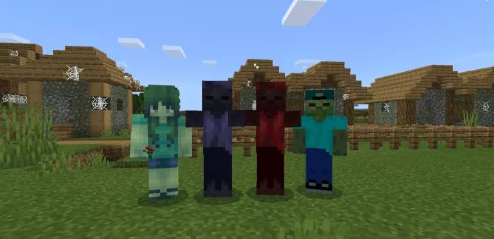 Do you believe that Minecraft Bedrock could benefit from an increased number of zombies? The More Zombies mod introduces 6 new zombie types, each exhibiting unique behaviors that set them apart from the standard zombie.
