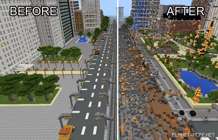 The mod «Nuclear Weapons» replaces four items in the Minecraft Pocket Edition world with more destructive alternatives. This weapon truly tests the limits of explosions, and after using some of them, your game might crash if you’re on a weaker device. However, the worst that can happen is that you may need to restart the game. Hopefully, this will satisfy your desire for destruction in the Minecraft PE universe.