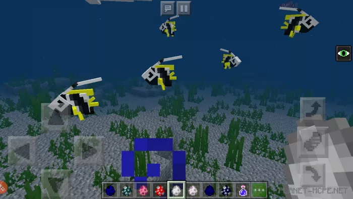 Peaceful mobs (butterfly fish, angelfish, whale, and shrimp, starfish): These are used to beautify oceans and aquariums in Minecraft Bedrock.