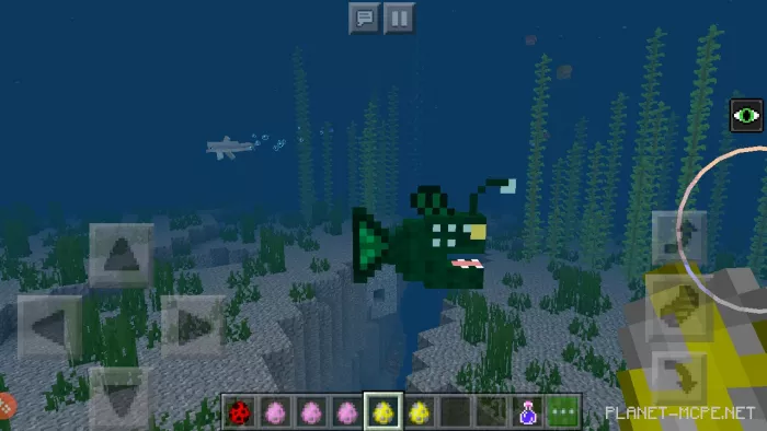 The mod «Oceanic (Oceania)» is a mod that introduces various aquatic creatures into Minecraft, including many such as: octopuses, starfish, new fish, crabs, rays, swordfish, sharks, whales, and many more.