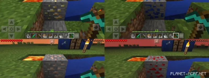 The cobblestone generator, which introduces new features to the Minecraft Pocket Edition, is part of the mod called Ore Generation (Ore Generator). This reliable cobblestone generator is well-known, but it’s no secret that cobblestone is abundant in the MCPE world, making it less sought after. Fortunately, the new BlockLauncher mod by MrAndyPE allows players to create opportunities for ore generation instead of just stone in Minecraft PE.