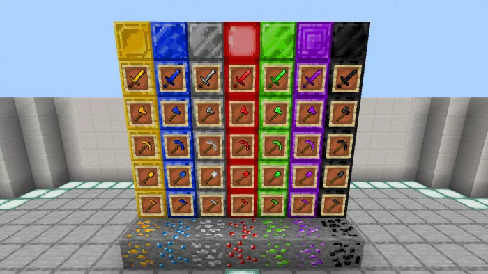 Each new ore can be used to craft tools, weapons, and blocks. Similar to the vanilla swords in Minecraft, the new ones have varying attack damage and durability.