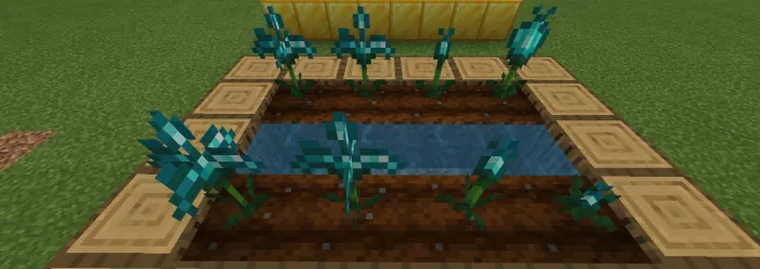 From these, you can cultivate diamond and golden plants in Minecraft PE. The diamond plants yield synthetic diamonds, which are used to create membranes. Meanwhile, the golden wheat will reward you with gold nuggets in MCBE.