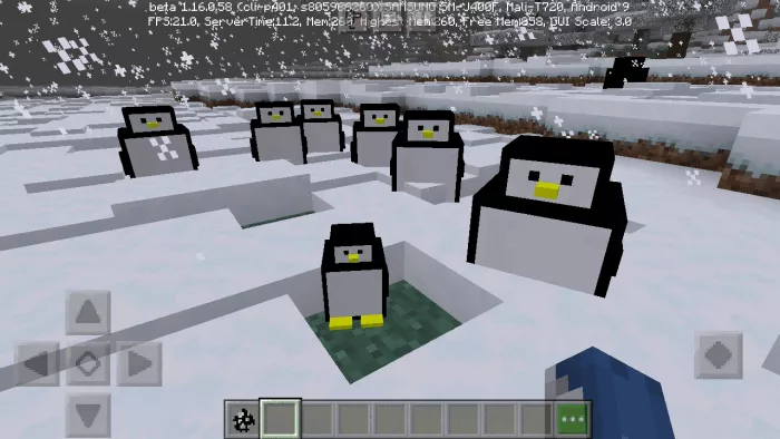 The mod “Penguins” introduces new creatures—penguins!—to Minecraft Bedrock!