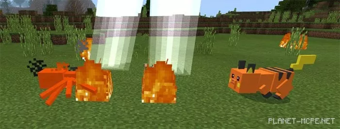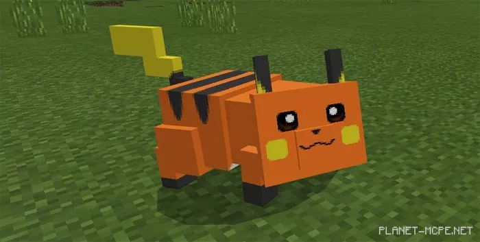 Pikachu replaces the pig and can naturally spawn in the regular world of Minecraft PE. You can tame it using carrots, beetroots, or potatoes. (Taming chance: 33%)