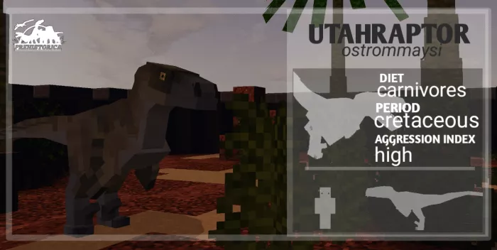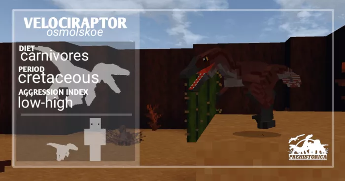 Velociraptor Osmolskoe. Although small, this dinosaur is very dangerous, possessing a longer skull than other subspecies. Be cautious when encountering it in Minecraft!