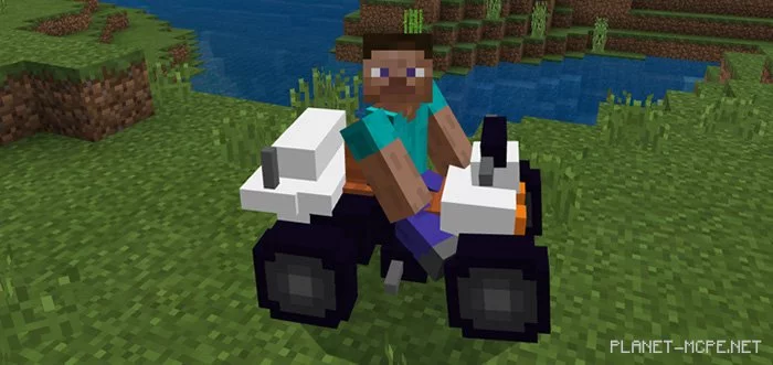 The mod “Quad Bike” replaces the standard spider in Minecraft Bedrock with a quad bike. This vehicle is suitable for all types of terrain, including forests and snowy biomes. It even features some really cool and realistic sounds. It’s the ideal mode of transport if you want to move around quickly and effortlessly in Minecraft.