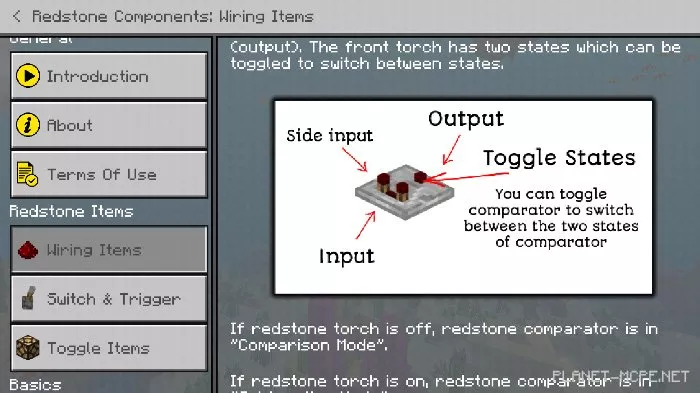 The mod «Redstone Guide» provides a comprehensive understanding of how redstone functions and how to utilize it in Minecraft Bedrock. This guide will detail the use of each redstone component, allowing you to grasp the concept of redstone much more effectively, as it includes images to assist you. The creation of redstone mechanisms and devices is facilitated through a step-by-step tutorial with visuals for clarity. Additionally, it offers various methods for applying redstone in Minecraft, helping you to craft your own redstone creations.