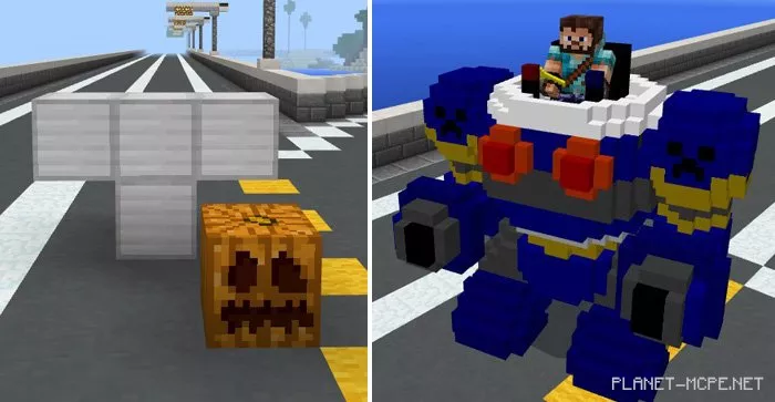 RoboCraft is a formidable robot that players can ride and control after installing the mod “RoboCraft” for Minecraft Pocket Edition. It comes with numerous technical advantages, such as the ability to launch missiles at hostile targets, run swiftly, and jump high. This robot is truly the perfect choice if you’re looking for a quicker and easier way to defeat your enemies in Minecraft PE.