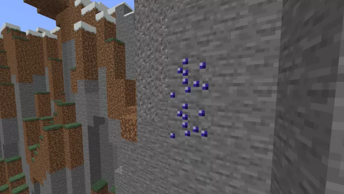 To discover sapphires in Minecraft, you will need to ascend to high altitudes in the mountains. Aim for an elevation around 90-100, approximately. Currently, a pickaxe is not necessary to obtain the gem – it can be collected by hand.