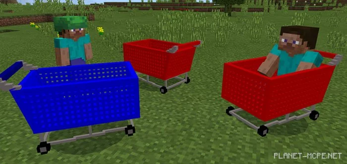 Shopping carts replace the spider and cave spider in Minecraft PE. The easiest way to obtain them is by using spawn eggs. If you’re playing in survival mode, you’ll need to search for shopping carts in areas where spiders can spawn (like caves or at night in MCPE).