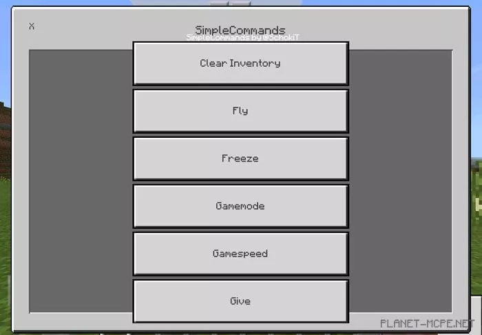 With the Simple Commands Buttons mod, executing simple commands in MCPE becomes significantly easier. You will no longer need to type commands in the chat to switch game modes, alter the time of day, or perform other actions. Simply open the command menu and click the desired command to activate it in the MCPE world.