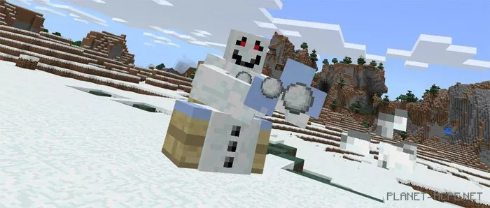 Of course, the snowman is hostile towards players in Minecraft Pocket Edition. It possesses two distinct attack types, which include explosive snowballs and explosive ice blocks.