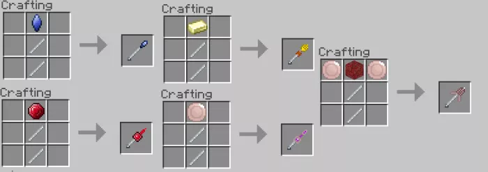 By the way, weapons! The mod introduces several types of staffs into Minecraft Bedrock Edition: