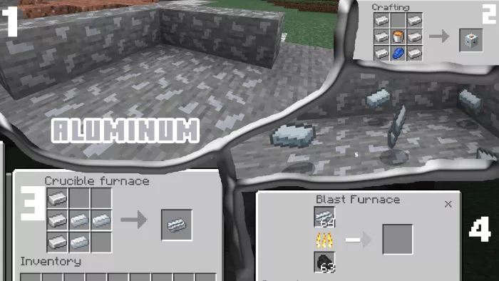 The mod introduces a new alloy to the game – aluminum. You will need it for most crafting recipes.