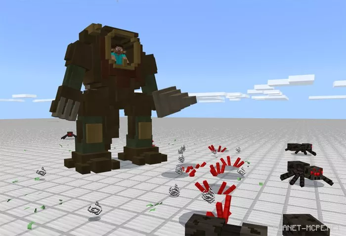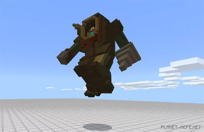 There is also a steampunk robot suit (replacing the creeper), which can be used as a mount. It can move very quickly and jump quite high, taking no fall damage in MCPE.