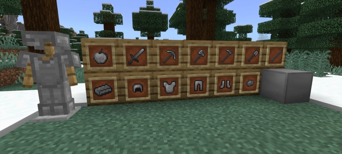 If you prefer not to deal with gathering resources, simply type /give @s sp1:name into the console to receive items. Enjoy your game!