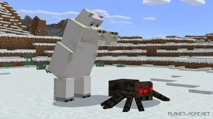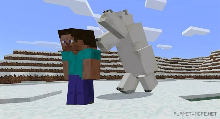 The polar bear was introduced in Minecraft Pocket Edition version 1.0.0. These creatures are neutral and can be found in the game. The mod titled Tameable Polar Bears allows players to tame bears by feeding them fish, enabling them to keep these animals as pets. They will follow you around, and you can even ride on them.
