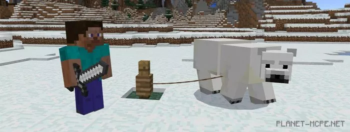Feeling tired? Hop on the bear and let it carry you. Hold the fish in your hand to steer in Minecraft PE.