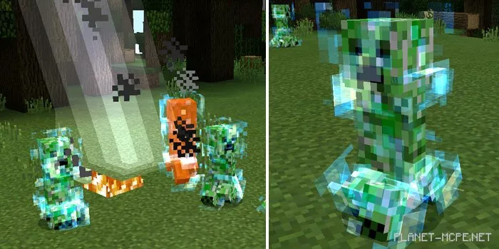 Be cautious with creepers. When lightning strikes a creeper, it takes no damage but becomes charged! This means its explosion in Minecraft Pocket Edition will be significantly more powerful!