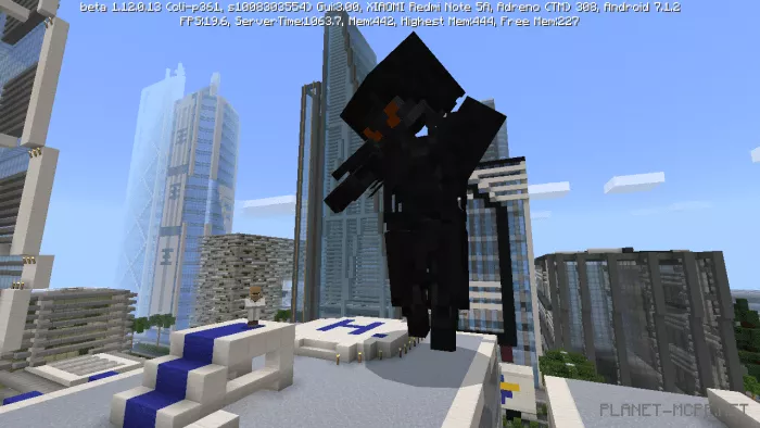 The mod “Titan 2004 (Titan)” transforms the Wanderer (Zimorg) in Minecraft into a Titan. This formidable creature boasts a health pool of 600 points, fires Shulker bullets, and is of colossal size. It can effortlessly destroy any block present in Minecraft Bedrock! The Titan shows no mercy; it makes no distinction between a villager, a Wandering Trader, an iron golem, a snow golem, or even you. It will eliminate everything in its path, but if you manage to defeat it, a generous reward awaits you—a Nether Star.